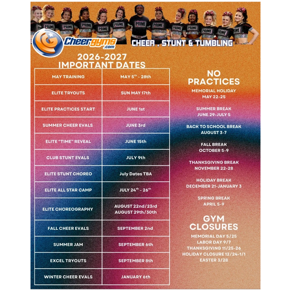 Cheergyms Elite program epitomizes the pinnacle of cheerleading excellence. It is the longest running All star program on the West Coast and is entering its 30th season. Within this program, athletes undergo rigorous training, showcasing exceptional athleticism, precise choreography, and teamwork. Invitation to try out for Cheergyms Elite program is a testament to an individual's dedication, hard work, and accountability in the sport. Being part of this prestigious program not only demands commitment from athletes but also relies on strong family support.