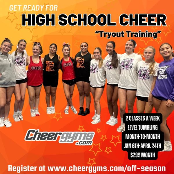 Join us for 6 weeks of intense cheer training and get ready for your tryouts! Each week classes will build on the fundamentals of cheerleading including jumping, tumbling, motion technique, choreography and stunting.